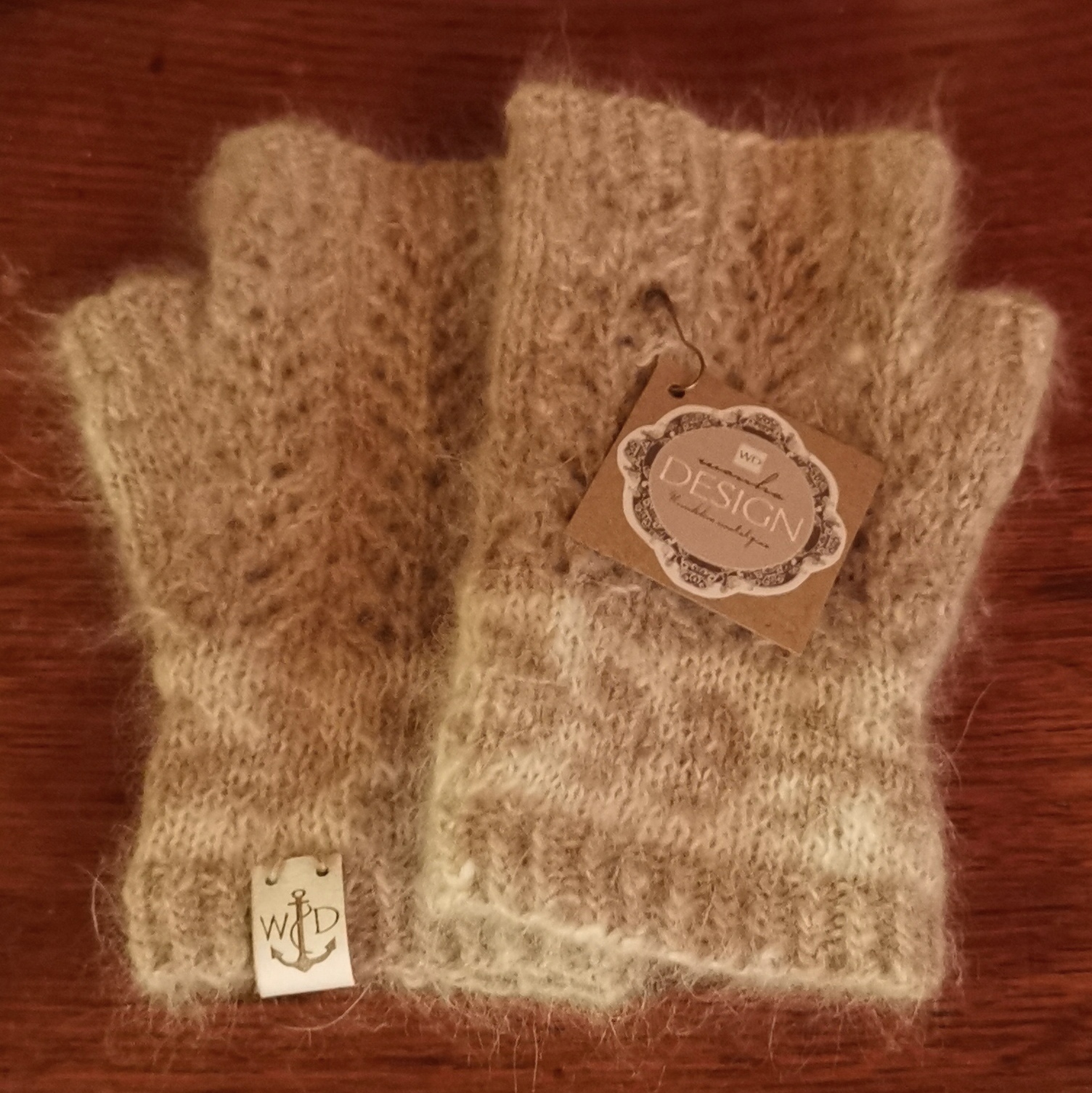 Kauniit Eleganssi Käsineet lämmittävät käsiä ja ovat suloisen pehmeät. Nämä ovat olleet kovasti päätetyöläisten suosiossa. Sormet jäävät vapaaksi, jolloin näppäimistöä on helppo käyttää. Samalla käsineet kuitenkin lämmittää ääreisverenkiertoa. Eleganssi Käsineitä löytyy eri materiaaleista. Kuvan pellavan väriset käsineet ovat neulottu käsin. Lanka on omien angoroiden, lähitilojen alpakan, babykamelin sekä villisilkin ylellisistä kuiduista käsinkehrätty. Nämä käsineet ovat todella kevyet, mutta lämpimät. Tämäkin ihana tuote on 100% kotimaista käsityötä. Nämä ihanuudet ovat todellista arjen luksusta. Koko: S/M Hoito: Tuuletus, hellä käsinpesu tai lumikylpy