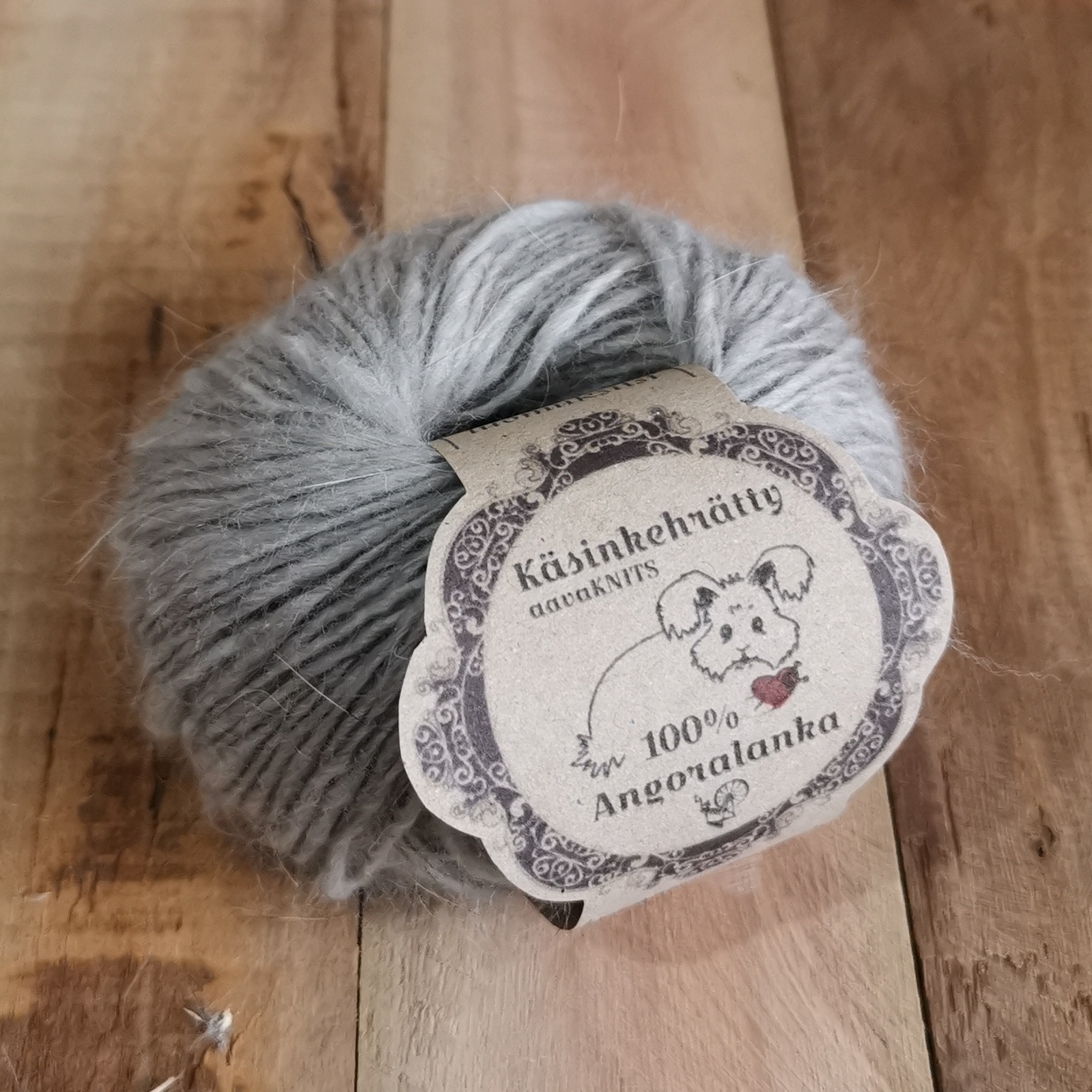 Kuiduntuottaja: Laumassamme on useita sinisiä angoroita, jotka tuottavat siniharmaata kuitua mm. Bluebird, Söpöys, Babyblue. Tämä harmaa taittaa siniseen. Värin vahvuus saattaa vaihdella.